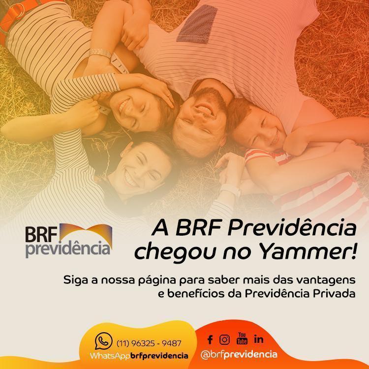 A BRF Previdência está cada vez mais próxima de vocês. Estamos na rede social interna de sua empresa (Yammer) e nas principais mídias digitais. Siga nas redes a sua entidade e fique por dentro de todos os detalhes de seu plano de previdência.