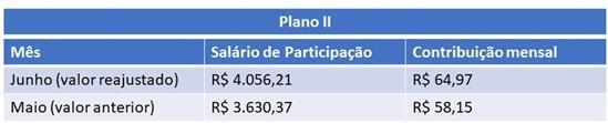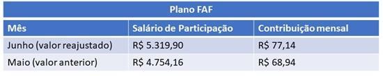Os Participantes Autopatrocinados e BPDs dos Planos II e FAF tiveram o salário de participação reajustado no mês de junho, com a cobrança efetivada em julho.