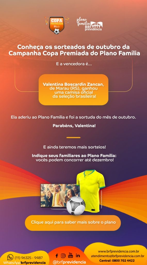 Conheça os participantes do Plano III premiados com 1 Camisa da Seleção Brasileira e 1 Smart TV