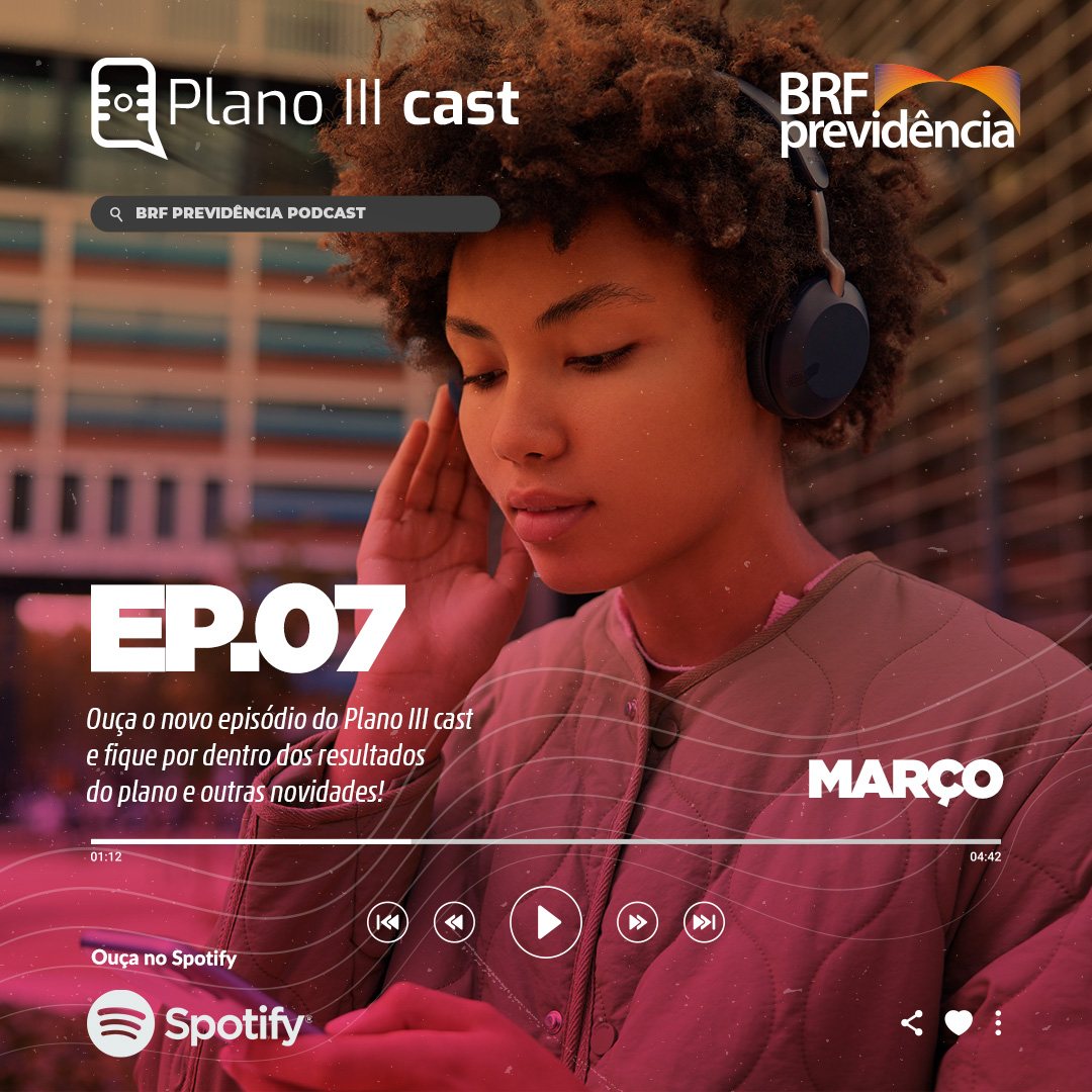 Já está no ar o sétimo episódio do Plano III cast, o podcast mensal do Plano III da BRF Previdência. Neste episódio, nosso Diretor de Investimentos, Marcio Tavares, faz um resumo dos resultados do plano no mês de fevereiro, além de abordar outros importantes assuntos.