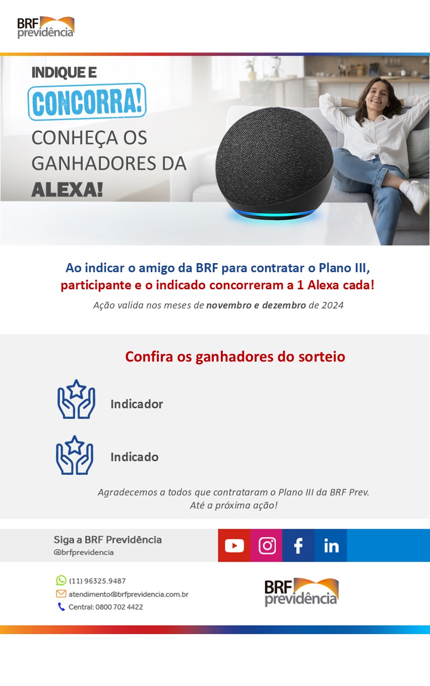 Participantes que fizeram as indicações e seus indicados em novembro de dezembro de 2024 concorreram cada um ao sorteio de 1 Alexa.