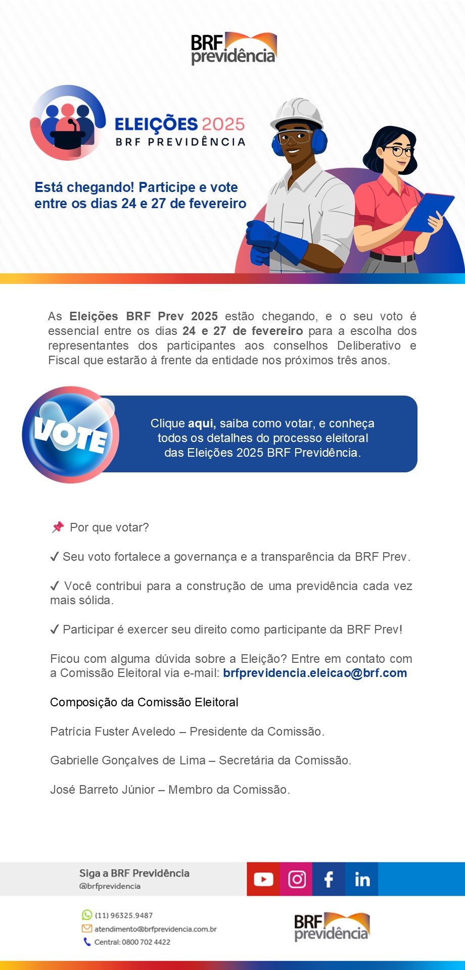 Conheça todos os detalhes do Processo Eleitoral 2025 da BRF Prev lendo nosso Boletim Informativo.