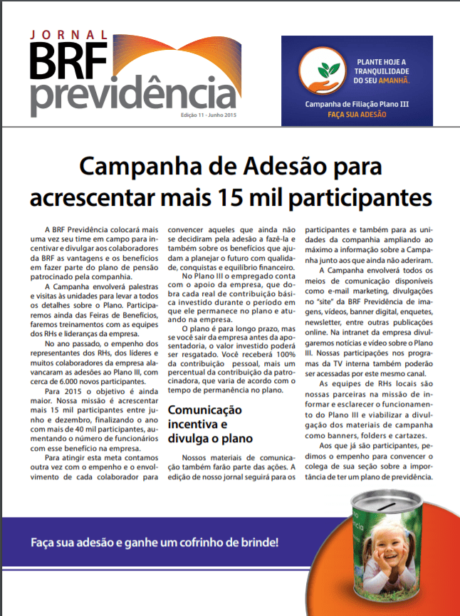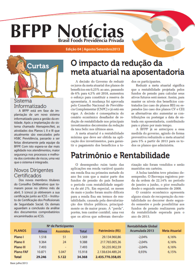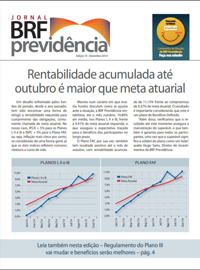 Revista BRFEdição 2013 janeiro 1, 2013 Rentabilidade acumulada mantém equilíbrio dos planos e benefícios